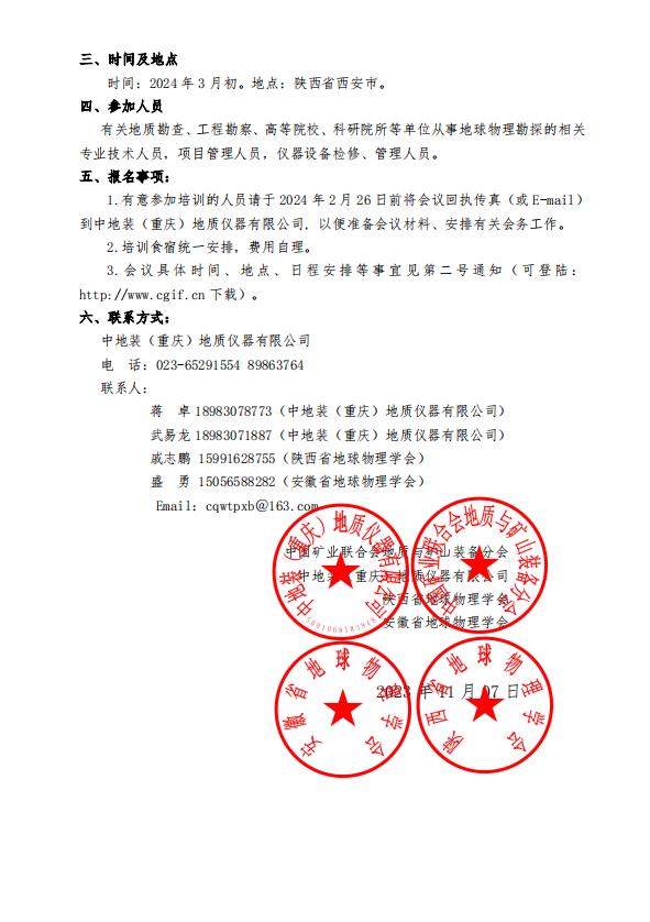 關(guān)于舉辦第十七屆電法、地震、測(cè)井方法技術(shù)培訓(xùn)班暨應(yīng)用交流會(huì)的通知(第一號(hào))