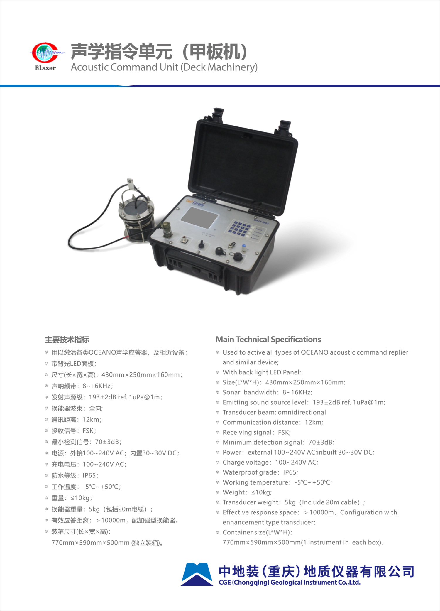 ◎ 用以激活各類OCEANO聲學(xué)應(yīng)答器,及相近設(shè)備;